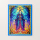 Puzzle in an illustration of The Magician tarot card symbolizing manifestation, power, and divine connection. Clad in radiant robes and framed by elemental fire and celestial light, he channels energy between heaven and earth. The infinity symbol above represents limitless potential and mastery. He embodies the will to create one’s own reality.
