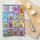 Sammlung von farbenfrohen Tarot-Karten aus dem Großen und Kleinarcana. Set auf blauem Gradientenhintergrund.
