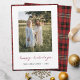 Envoyez des salutations de vacances avec amour et un simple et festif flair. Ce modèle de carte de vacances photo personnalisée est un instantané à personnaliser. A l'avant, nous avons donné à ce design minimaliste une touche chaleureuse avec un accueil "happy holiday" basé sur notre propre écriture dans une élégante teinte bordeaux (couleur 800020) dans un script décontracté qui se sent intime et familier. Cet élément d'écriture du design ne peut pas être modifié, car il s'agit d'une image. Vous pouvez modifier la couleur, la police ou la taille du texte de n'importe quel texte que vous personnalisez en dessous, qui est noir par défaut. Nous avons inclus une frontière tartane sur le devant et un design écossais simple et gai sur le dos aussi. Nous avons choisi mat comme choix de papier par défaut, mais vous pouvez bien sûr le remplacer par semi-brillant si vous préférez un look plus brillant, et n'oubliez pas de jeter un oeil à la sélection de papier premium de zazzle! Utilisez le mode de montage intuitif et la photo préférée de zazzle et faites de cette carte de vacances simple et moderne uniquement la vôtre. Et s'il vous plaît naviguer dans notre magasin pour des modèles de cartes de vacances plus élégants!