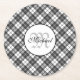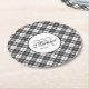 Tartan pattern Christmas Schwarz-weiß Monogram Runder Pappuntersetzer