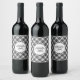 Tartan pattern Christmas Schwarz-weiß Monogram Weinetikett