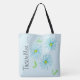 Designer Große Tasche mit hellblauem Hintergrund, die in Ihre bevorzugte Farbe geändert werden kann. Stilvolle moderne Tasche mit Blumenmuster und Blume Art Design. Text kann für Sie personalisiert sein oder ein benutzerdefiniertes Geschenk, oder Text ist abnehmbar.