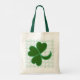 Klee verlasse grün. Kleine Blatt-Konturen sind gekachelt, um Hintergrunddruck zu erstellen. Grosses Kleeblatt in dunkelgrün und in hellgrün umrissen, ist zentriert. Das gleiche Muster auf beiden Seiten.