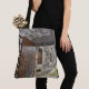Treten Sie ein in die Zeit mit dieser einzigartigen und langlebigen Tasche. Das Design zeigt eine eindrucksvolle Fotografie einer massiven, beschlagenen Holztür einer Burg, die leicht geöffnet ist und in eine raue Steinmauer eingelassen ist. Das Bild nutzt natürliches Licht und Texturen, um ein Gefühl von Geschichte, Mysterium und alter Architektur zu erzeugen.