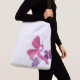 Dieser körperübergreifende Totbeutel wird in einem rosa Brustkrebsbewussungsband und in der Schmetterlingskunst gezeigt. Große Größe angezeigt Anpassen Sie dieses Objekt oder kaufen Sie, wie es ist. Börsenbild vecteezy.com