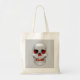 Das Design zeigt die Cartoon-Paarung eines grinsenden grauen Schädels mit rot-schwarzen Augen und einem rot-schwarzen Hohlkopf für die Nase. Der Schädel zeigt ein hässliches Grinsen und wird auf einem grauen Hintergrund platziert. Sie können die Farbe des Hintergrunds ändern und eigene Wörter einfügen, indem Sie auf den Button "Anpassen" klicken.