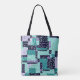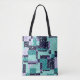 Tasche Sie Ihre Sachen stilvoll mit einer niedlichen Körper- oder Schultertasche-Tasche, die ein lustiges abstraktes Muster von Würfeln und Crackles in den Tönen Grün , lila , Schwarz , Grau und Weiß zeigt. Original-Kunstwerk von Buttercup's Bekleidung und Collectables.