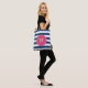 Eine SeeTaschentasche mit den blauen und weißen Streifen und ein monogrsm in der Mitte.
