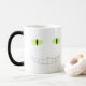 Zwei Cheshire Gesichter auf einer Tasse. Mit der morphenden Tasse können auch Augen und Mund verschwinden lassen!
