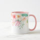 Diese blumengeschmückte Tasse hat hübsche Pastellbilder von Blume am oberen Rand der Tasse. Die Beispielinnenausstattung ist rosa. Wählen Sie Ihre Farbenausstattung, um Ihren Geschmack Anzug. Passen Sie diese Tasse an oder kaufen Sie sie wie geplant.
