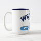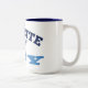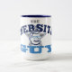 Tasse, weiß mit blauer Innenausstattung und das Logo des Website-Typ auf der Außenseite