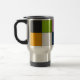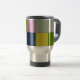Eine Edelstahl-Reisetasse mit modernem geometrischem Patchwork-Design in kräftigen Farben. Mit Schattierungen in Schwarz, Grün, Rosa, Orange, Grau und Blau kombiniert diese künstlerische Tasse Funktionalität mit Stil. Perfekt für Kaffeeliebhaber, Pendler oder jeden, der gerne seine Getränke in einem kreativen Accessoire bei sich trägt.
