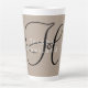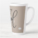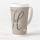 Tan Kaffee Tasse mit Ihrem Namen in weiß und initial in schwarz. Farben können durch die Wahl der personalisierbaren und anpassbaren Optionen geändert werden. Design HAMbyWhiteGlove alias HAMbWG.