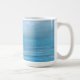 Ein Becher mit einem ruhigen, blauen Ozean-Design, wo das Licht der Sonne schimmernde Reflexionen auf dem Wasser. Das Meer wirkt ruhig, mit verschiedenen Blautönen, von helltürkisfarben bis tiefer, was die friedliche Schönheit des Ozeans unter dem hellen Sonnenlicht einfängt. Die Sonnenstrahlen tanzen über die Oberfläche und verleihen der Szene einen zauberhaften, fast magischen Effekt, der das Gefühl eines warmen, sonnigen Tages am Meer verstärkt.