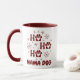 Snowflake Pfote Print Ho Ho Ho Mama Hund Tasse. Genießen Sie den Urlaubssinn mit unserer charmanten Ho Ho Ho Mama Dog Tasse! Diese herrliche Tasse in Rot und Weiß ist mit verspielten Schneeflocken, bezaubernden Pfotendrucken und süßen Herzen geschmückt und ist ein idealer Begleiter für die festliche Jahreszeit. Ob Sie einen gemütlichen Morgenkaffee genießen oder nach einem erlebnisreichen Winterabenteuer mit einer heißen Schokolade entspannen, diese Tasse verleiht Ihren Winterabenden eine Touch Wärme. Es ist das ideale Geschenk für jeden Mama-Hundeliebhaber in Ihrem Leben, der sowohl Urlaubsjubeln als auch eine Liebe für Furry-Freunde kombiniert.