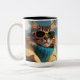 Eine niedliche Kaffee-Tasse mit spielerischem und humorvollem Ambiente. Die Tasse zeigt ein Cartoon-ähnliches Bild einer Katze, die entspannt und cool aussieht und eine Sonnenbrille trägt. Die Katze scheint sorglos zu sein, als ob sie einfach nur den Sonnenschein genießen würde. Die Kombination aus Katze und Sonnenbrille verleiht der Tasse ein modernes und trendiges Ambiente, das sich ideal für Katzenliebhaber eignet, die ihren Kaffeemaschinen ein wenig Spaß gewollt haben. Die Farben der Tasse sind hell und freundlich und machen sie zu einem erfreulichen und auffälligen Vergnügen.