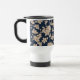 Diese Tasse zeigt das Mitternachtsblütenmuster mit einem hellblühenden Set, das vor einem reichen Mitternacht und marineblauen Hintergrund steht. Die subtile Wärme der bunten Blüten schafft einen atemberaubenden Kontrast zu den tiefen, raffinierten Farbtönen, die ein Gefühl von ruhiger, nächtlicher Schönheit wecken. Dieses Blumendesign ist für Minimalisten und diejenigen, die zeitgenössischen Flair Liebe.