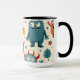 Das ist eine Tasse mit niedlichen Monstern, die darauf gezeichnet werden.