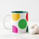 Multicolor Polka Dot Design Diese Tasse zeichnet sich durch große, lebendige Polka-Punkte in kühnen Farbtönen aus: Gelb, Rot, Grün und Rosa. Der innere Rand ist tief aquamarin und fügt einen modernen Kontrast hinzu. Das spielerische Muster verleiht ihm ein fröhliches, jugendliches Ambiente, das sich perfekt für die Aufhellung jeder Morgenroutine eignet.