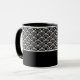 Keramik Kaffeekaffee Tasse wird mit einem Schwarz-Weiß-Kunstdruck gezeigt. Passen Sie dieses Element an, und ändern Sie den Beispielnamen in Ihren Namen.
