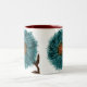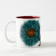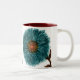 Schöne Tasse mit einer aquamarinen Blume und in einer dunklen Farbe. Blume aus originalen Tintenbildern.