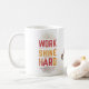 "Bleibe mit jedem Schluck aus unserer "Work Hard Shine Hard" Kaffee-Tasse motiviert. Diese Tasse, die aus hochwertiger Keramik hergestellt wurde, ist darauf ausgelegt, Ihre Lieblingsgetränke bei perfekter Temperatur behalten, während Sie Ihre täglichen Aufgaben bewältigen. Der kühne Slogan, der auf beiden Seiten prominent vertreten ist, dient als ständige Erinnerung, um die Mühe zu setzen und Ihre Errungenschaften lassen. Egal, ob Sie Ihren Morgen beginnen oder eine dringend benötigte Pause einlegen: Diese Tasse ist Ihr Weg für Inspiration und Stil."