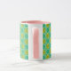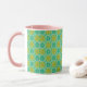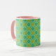 Das ist eine Tasse. Es hat ein raffiniertes Design mit einer harmonischen Kombination aus Gelb und Minze.