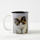 Chaton aigu bleu bicolore de Ragdoll avec l'arrière - plan bleu-clair.