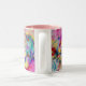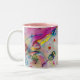 Clown rose, coloré, capricieux, drôle jouant du bugle avec un hibou expressif et des notes musicales joyeuses, fleurs, feuilles en rouge vif, fuchsia, violet, violet, bleu, couleurs blanches, aquarelle de Bulgan Lumini (c)