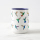 Mignonne tasse pour les amateurs de colibris avec plusieurs espèces de colibris colorés, comme un colibri à gorge vif, un saphir à queue dorée, un colibri à couronne azur et un colibri à ventre saphir, un colibri à bec large, une oreille violette, un coronet et un colibri à fronton. Images tirées de peintures originales sur aquarelles de Christiane Dobbins.