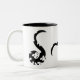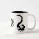 Cette tasse est composée de trois dragons de danse noire, animés et ludiques, posés sur un arrière - plan métallique argenté avec garniture noire.