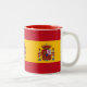 Le drapeau national de l'Espagne entoure la tasse, mais au lieu d'avoir un seul blason, il y en a trois qui sont égalés autour de la tasse.