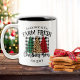 Ajoutez une touche rustique à vos matinées de vacances avec la Mug à café à deux tons de Buffalo frais de la ferme. Doté d'un banc de buffle rouge et vert festif et d'arbres de Noël empreintes de léopard contre un arrière - plan de buffle noir, ce mug incarne des ambiances de vacances douillettes. Customisez-le avec votre nom de famille et votre année d'établissement pour en faire le vôtre. Sirotez votre boisson préférée avec style et célébrez la saison avec une touche personnalisée. Appréciez l'esprit de vacances avec une touche personnalisée. Choisissez la Mug à café à deux tons de sapins de Noël Plaid Farm Fresh Buffalo et savourez vos boissons festives dans une tasse qui reflète le charme unique de votre famille.
