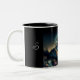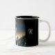 Magnifique loup majestueux hurlant dans une mer de montagnes, d'étoiles et de pins. La tasse à café parfaite pour vous - l'amateur de loups. Personnalisez en ajoutant vos initiales.