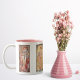 Une tasse à café avec les illustrations de Four Seasons d'Alphonse Mucha (1860-1939), artiste et illustrateur tchèque de l'Art Nouveau. Il a révolutionné l'art du design d'affiches. Une représentation de quatre femmes habillées à la mode pour signifier les saisons - hiver, printemps, été et automne. L'hiver parcourt la tasse d'une dame éthérée aux tons cool, capturant la sérénité des paysages enneigés. Des fleurs printanières avec une figure drapée de motifs floraux, incarnant la fraîcheur de la saison. L'été rayonne de chaleur avec des teintes vibrantes, et les enchantements de l'automne avec un riche portrait aux tons terre symbolisant la récolte et la transition.