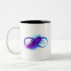 Infinity symbole with a beautiful feather painted in purple and blue bright colors on white background