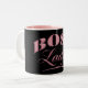 Une version contemporaine élégante de notre design de tasse cadeau Boss Lady avec lettrage rose sur un arrière - plan noir à donner est un cadeau ou profiter pour vous-même.