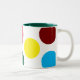 Conception de points Polka Multicolor Cette tasse présente de grands pois vibrants aux couleurs vives (jaune, rouge, vert et rose) sur un arrière - plan blanc propre. La jante intérieure est une turquoise profonde, ajoutant un contraste moderne. Le motif ludique lui donne une ambiance jeune et joyeuse, parfaite pour égayer n'importe quelle routine matinale.