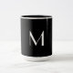 Mug à café à deux tons avec arrière - plan noir solide classique et police blanche.Design simple avec un look strict par Alma Wad.Personnalisez-le avec votre monogramme maintenant. Le noir est souvent associé au signe zodiaque Scorpio. Cette couleur reflète la nature intense, mystérieuse et transformatrice de Scorpio. Vous pouvez tenir compte de cela lors du choix d'un cadeau.