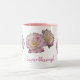 Cette jolie tasse de Pâques va égayer la journée de quelqu'un de spécial. Il est décoré de délicats dahlia nénuphar rose et blanc. Le texte peut être customisé ou supprimé.