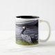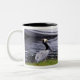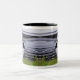Dans des nuances douces de bleus, gris et marrons, le pélican, sur la photographie originale de MaeFlowers sur cette tasse, pose au bord de l'eau, attendant que les poissons nagent à proximité. La lumière se reflète sur les plumes brillantes et met en évidence les ondulations dans l'eau.