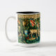 Mug de café avec tapisserie de William Morris Verdure avec cerf et boucliers (1891-1894). Une scène verdoyante de cerfs buvant dans un bassin d'eau et mangeant des feuilles d'arbres dans une forêt verte. Au-dessus de eux sont accrochés les boucliers des Chevaliers de la Table Ronde. Un cadeau magnifique pour les amateurs d'Arthuriana et les collectionneurs d'art victorien.