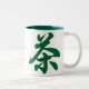 Une tasse avec le kanji japonais (caractère) pour le "thé" dans la couleur vert-foncé.