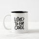Comme nous les millénaires commencent à nous sentir ces derniers temps ! La tasse à lettres à la main contient le libellé "Utilisé pour être Cool" d'un côté et "So Cool So Long ago" d'un autre côté avec une petite tasse dans le coin inférieur au verso.