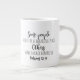 Jumbo Certains jours, une tasse de joe de taille régulière ne le fera pas. Quand vous avez besoin d'une dose de caféine en plus, utilisez votre tasse XL de Zazzle. Peut contenir jusqu'à 591 ml. Idéal pour des soupes, céréales, glaces et du chili aussi ! Cette tasse géante à une anse en forme de C pour une utilisation confortable. Dimensions : Hauteur : 4,5" Diamètre : 3,9" Capacité : 20 onces Micro-ondes et lave-vaisselle sans danger Construction céramique forte Satisfait ou dépasse les exigences de la FDA en matière de salubrité des aliments et des boissons Conseil du concepteur : Pour assurer l’impression de haute qualité, veuillez noter que l’aire de conception personnalisable de ce produit mesure 4" de haut x 10,5" de large