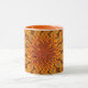 15 onces. Tasse avec une photo abstraite. Poignée et lèvre oranges.
