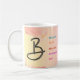 Diese Tasse wird für jeden, von deiner süßen Oma bis hin zu deiner Teenagerschwester, von Beliebtheit sein. Mit der richtigen Botschaft kann eine Tasse für viele Jahre zum wertvollen Begleiter eines jeden werden. Dieses Design zeichnet sich durch einen wunderschönen, handgezeichnet Buchstaben "B" in schwarz kursiv auf einem atemberaubenden Aquarellhintergrund aus. Die links Seite zeigt einen warmen gelb-rosa Farbverlauf, die rechte Seite zeigt einen weichen rosa-gelben Farbverlauf. Um den Brief herum sind lebendige Wörter in verschiedenen Farben, darunter Blau, Orange, Rot, lila und Rosa, die positive Eigenschaften hervorheben, beginnend mit dem Buchstaben "B". Der Gesamteffekt ist ein visuell ansprechendes und aufhellendes Design, das die Schönheit des Buchstaben "B" und der damit verbundenen Qualitäten feiert. Der Aquarellhintergrund verleiht dem Ganzen eine Touch von Eleganz und Eleganz und macht es zu einem idealen Design für inspirierende oder motivierend Zwecke.