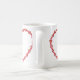Fotografie der gekrönten Halskette: rote Glasperlen mit weißen Blume. Der Bereich der Halskette bildet sich in Herzform. Bild auf jeder Seite der Tasse.