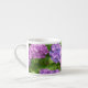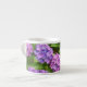 Eine hübsche Espressokaffee-Tasse mit rosa, lila und blauen Hydrangeas aus einem Foto von Judy Adamson. Ein Teekanne, Krug und andere Tasse sind mit diesem Design auch in meinem Laden erhältlich.