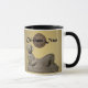 Blanc et noir 11 oz. tasse combinée avec une image, de part et d'autre, d'un médaillon aztèque d'or avec Chichen Itza imprimé sur elle en lettres noires stylisées, et l'image d'une statue maya Chac-Mool extrêmement bien conservée sur or brossé.